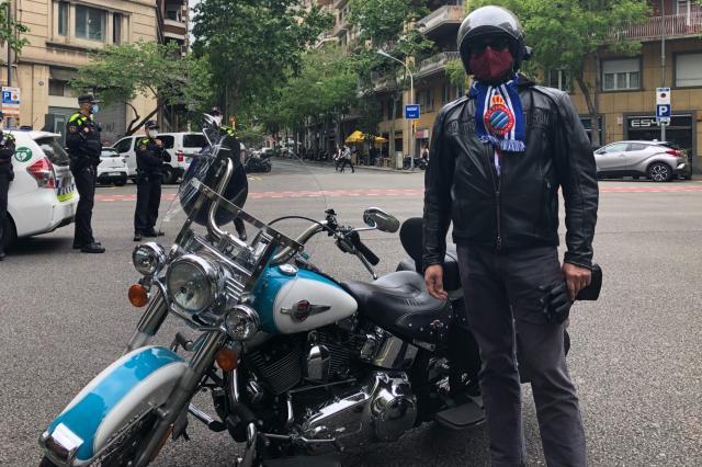 升级形势大好,也让当地的西班牙人球迷,把这场依旧不能入场的比赛再次变成狂欢。通过当地电台的一期节目,我认识了比利时球迷托马斯,在没有迪马塔的时候,他就已经是西班牙人球迷了。在当地,球迷组织再次组织了摩托巡游,我则与托马斯约定合租一台车,合租的好处除了省钱,还有届时坐在摩托车后座的我,能将巡游的场面实时地传递给国内球迷。